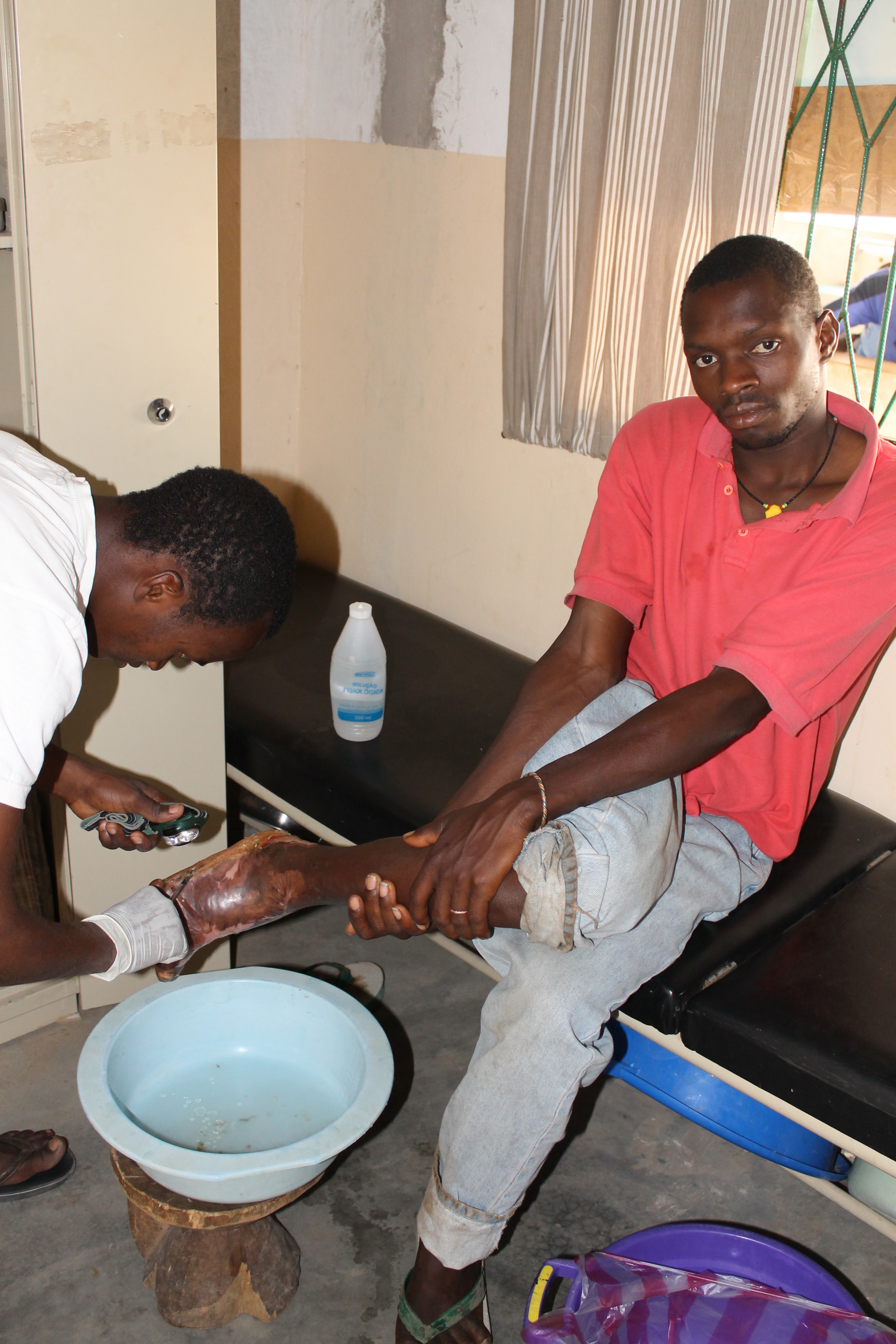 Sete um voluntario, realizando curativo
