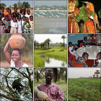 A Guiné-Bissau, fortemente dependente da agricultura e da pesca, é objecto de um programa do FMI (Fundo Monetário Internacional) para o ajuste estrutural. A castanha de caju, de que é hoje o sexto produtor mundial, aumentou consideravelmente de preço em anos recentes. O país exporta peixe e mariscos, amendoim, semente de palma e madeira. As licenças de pesca são uma importante fonte de receitas. O arroz é o cereal mais produzido e um ingrediente típico e indispensável na alimentação.